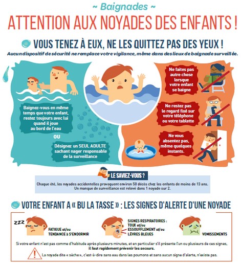 Les enfants de moins de 6 ans représentent 15 % des décès par noyade accidentelle chaque année. Face à ce constat, le ministère chargé de la santé et ses partenaires mènent de nombreuses actions de prévention pour permettre aux enfants l’apprentissage de la nage et pour informer parents et enfants des gestes essentiels à adopter pour se baigner et pratiquer une activité nautique en toute sécurité.