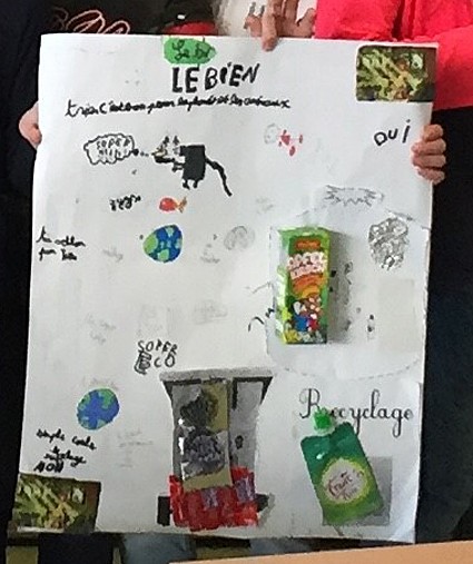 « Ce projet s’est déroulé en plusieurs étapes » précise l’enseignante : « nous avons déjà vu les différentes poubelles existantes, parlé de la masse quotidienne de déchets, puis nous avons fait un travail sur le tri en général, ce qui a permis à l’élève de s’interroger et de lui montrer comment il peut agir à son échelle. »