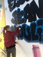 Le club ados a sorti échelle, rouleaux et pinceaux. Depuis lundi 19, 6 jeunes de ce club sont à pied d’oeuvre pour réaliser une peinture murale sur le pignon côté rue de l’école maternelle. « Ils sont six, précise Boubaker Derkaoui, directeur du périscolaire, et responsable du club. Les plus assidus et les plus motivés ». La fresque est inspirée de celui qui a donné son nom à l’école, le célèbre résistant Jean Moulin. Elle fera l’équivalent de 6 m sur 4. Pour la conception et la mise en peinture, Boubaker a fait appel aux services d’une association, Deap-Fusion, spécialisée dans le graphisme sur bâtiments.