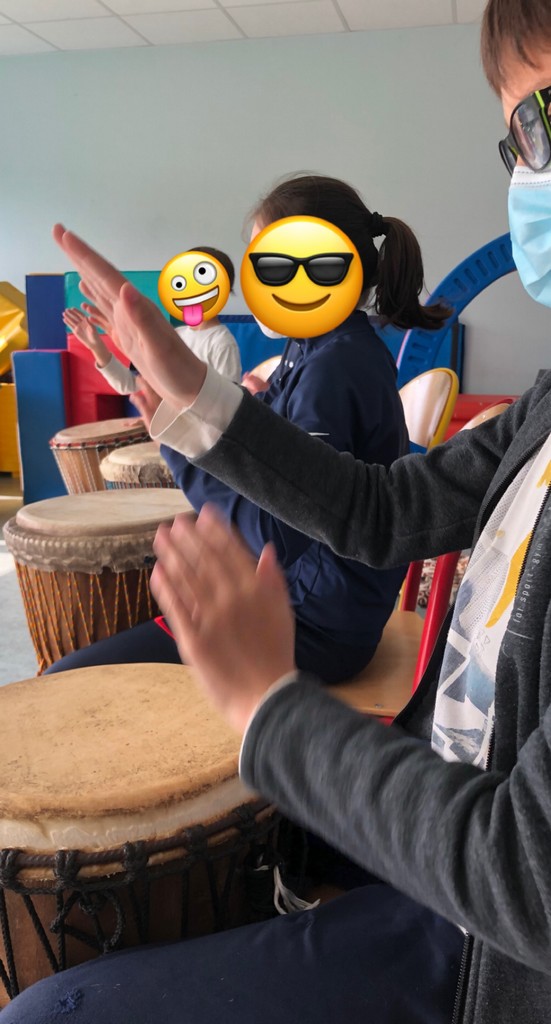 L’atelier djembe qui marche toujours autant avec le maximum d’enfants (la plupart inscrits spécialement pour l’atelier le lundi soir).