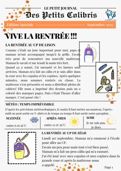 Petit Journal des Petits Colibris C'est avec un grand plaisir que je vous partage la première édition de notre "Petit Journal des Petits Colibris".