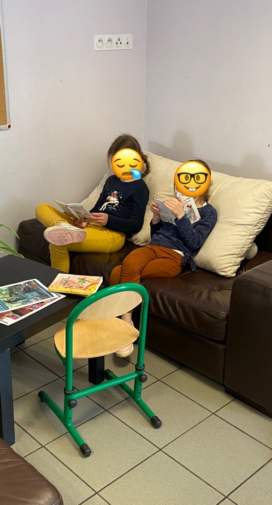 On a installé un canapé pour un coin détente chez les primaires.
