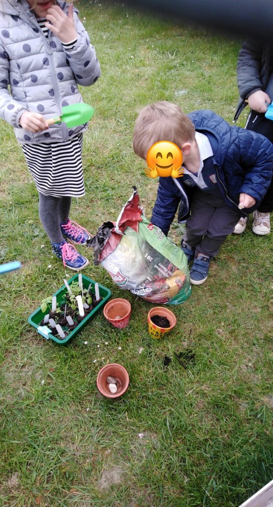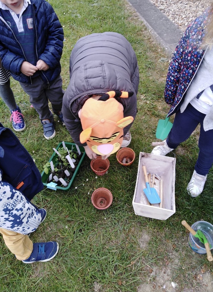 Reprise du jardinage avec Nathalie le lundi soir chez les maternelles.