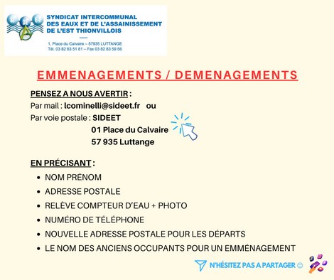 Le S.I.D.E.E.T. (Syndicat Intercommunal Des Eaux et de l'Assainissement de l'Est Thionville) maîtrise pour notre commune la production et la distribution de l'eau.
